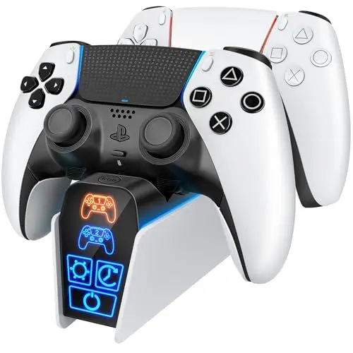 Produktbild: Fenolical Ladestation für DualSense PS5 & Edge Controller, Touch-Ladestation, Zeitgesteuerte, Multifunktionale Playstation5-Gaming-Ladestation mit frei Steuerbarer Beleuchtung für Playstation Spiele