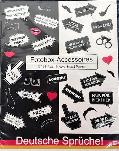 LOS!!! Deutsche Sprüche: Hochzeits-Wedding und Party-Fotobox-Accessoires mit Deutschen Sprüchen Fotoautomat Requisiten Props Photo Booth Hochzeit Props Accessoires