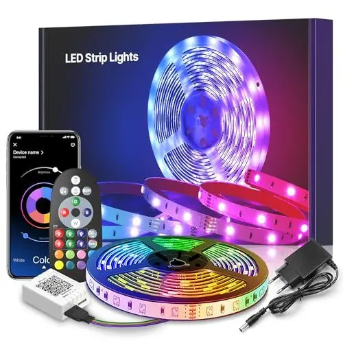 Produktbild: LED Strip 6m, RGB LED Streifen, APP und Fernbedienung, Bluetooth Selbstklebend Musik Sync Timer-Einstellung, Band Stripes Dimmbar Led Lights für Zimmer Party Room, Küche
