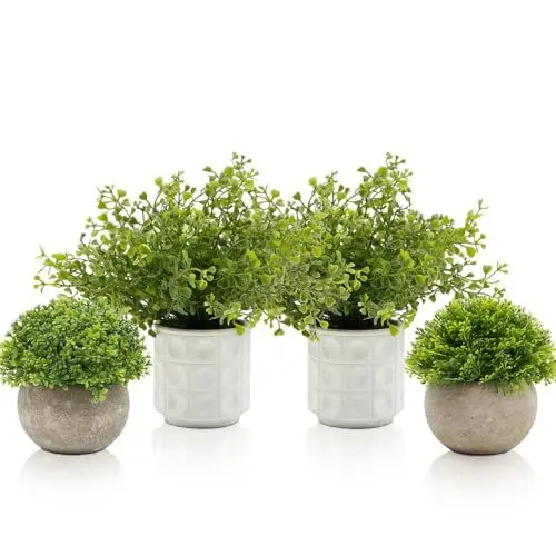 YVONNEYI 4 Stück Künstliche Pflanzen, Mini Kunstpflanze, Künstliche Pflanzen Plastik für Schlafzimmer Badezimmer Küchen Zuhause Innen Deko (012, 4 Stück)